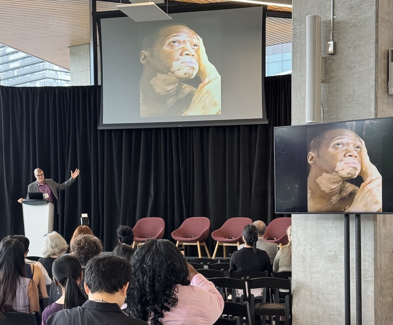 Когда Ли поднялся на сцену Всемирного дня витилиго 2025 в Торонто — без анонса, без фильтров — зал встал. Для многих это был первый человек с витилиго, которого они когда-либо видели на экране. Увидеть его вживую — было совсем другим опытом.